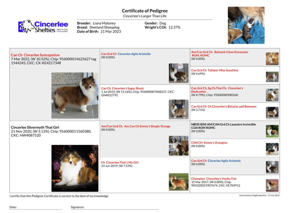 CAN CH Cincerlee Vanity Fair